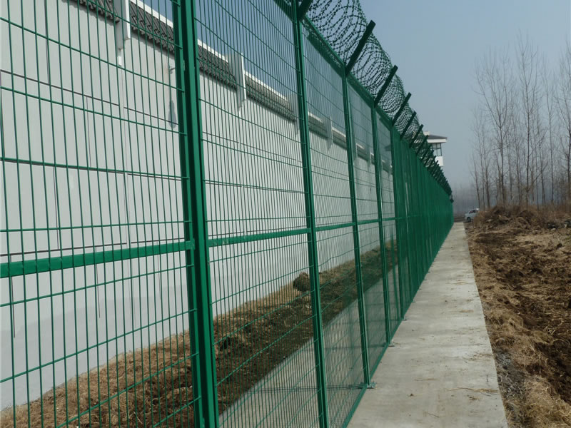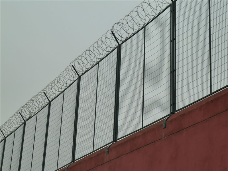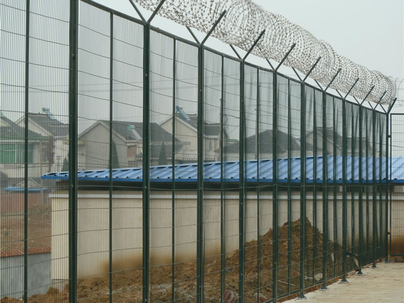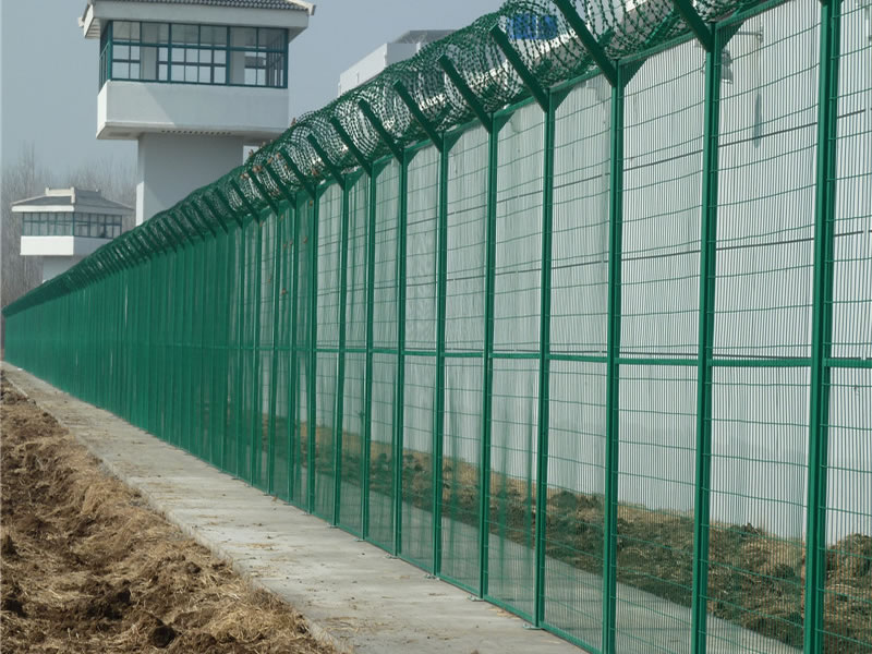 監(jiān)獄護(hù)欄網(wǎng)現(xiàn)被廣泛應(yīng)用在監(jiān)獄,軍事基地等高安全場(chǎng)所。注:如果在監(jiān)獄護(hù)欄網(wǎng)頂部加裝刀片刺絲、刀片刺繩后又很好的增強(qiáng)了安全防護(hù)性能。采用電鍍、熱鍍、噴塑、浸塑等防腐形式,具有很好的抗老化、抗曬、耐候等特點(diǎn)。其產(chǎn)品造型美觀、花色多樣,既起到圍欄作用,又起到美化作用。由于具有安全性高、防攀爬能力好,網(wǎng)片連接方式采用SBS緊扣件,有效防止人為的破壞性拆卸,橫向四道折彎加強(qiáng)筋,使網(wǎng)面強(qiáng)度大大增加。