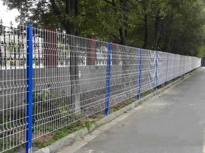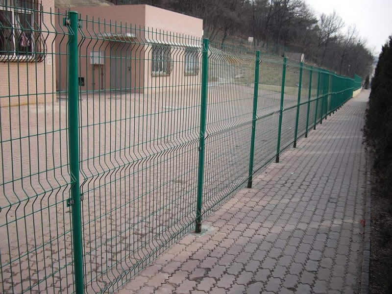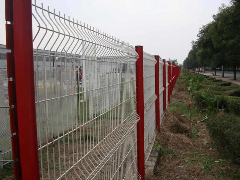 折彎護欄網的結構:用高強度冷拔低碳鋼絲焊接后在經過液壓成型,用鏈接附件與鋼管支柱固定。